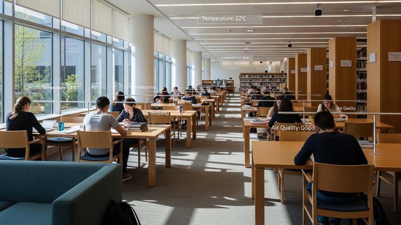 University libraries impose unique requirements on environmental monitoring. They are densely populated yet demand quiet and stability. At the same time, temperature, humidity, air quality, and lighting conditions directly affect both user comfort and the preservation of books and archives.